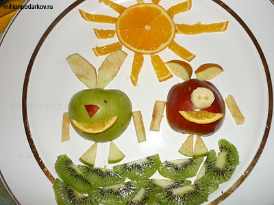 Поделка из фруктов "Нюша и Крош"