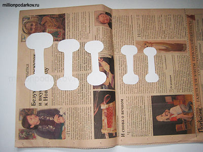 Сложите газету так, чтобы получилось 6 слоев бумаги - нам нужно будет по 6 деталей. Нарисуйте шаблоны , как на фото - каждый следующий меньше предыдущего.