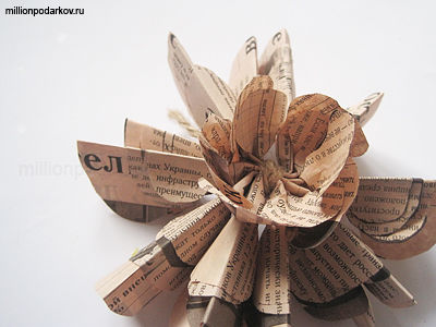 Поочередно загибаем внутрь все лепестки. Наши поделки из газеты готовы!