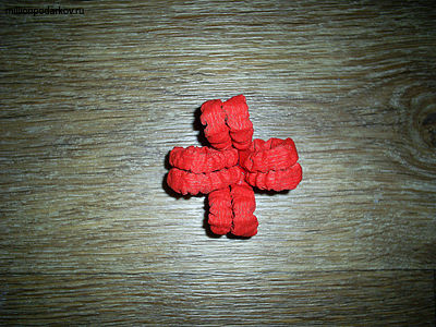 Две гофротрубочки склеиваем вместе крест на крест. Концы подклеиваем в середину. Получается бутон.