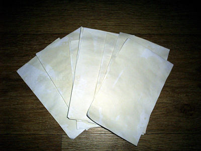 С помощью мягкой кисточки наносим на листы крепкий раствор чая. Оставляем сохнуть. Получаются вот такие слегка состаренные странички блокнота.