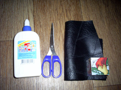 Для изготовления шкатулочки нам понадобится детская игрушка в виде дутого кубика, кусок кожи, скотч, ножницы и клей ПВА.