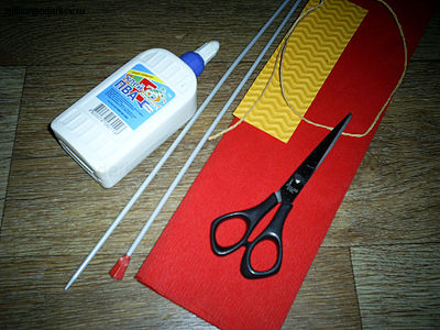 Для того чтобы сделать закладку, Вам понадобятся такие материалы, как гофрированная бумага, клей ПВА, ножницы, клеящий термопистолет, спицы, сизалевая веревка, гофрированный картон.