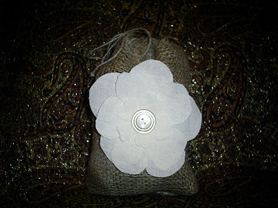 Сегодня мы делали поделки из мешковины, в результате чего получился вот такой симпатичный декоративный мешочек с цветочком. Его можно использовать для упаковки подарка или изготовления ароматного саше.