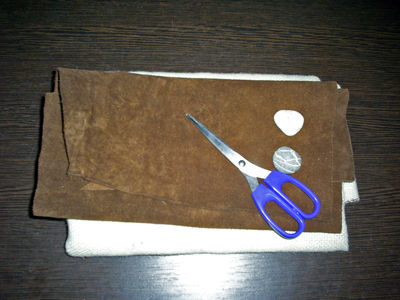 Для изготовления поделки нам понадобятся два морских камушка разных цветов – белый и черный или белый и серый. Кроме этого подготовьте кусочек льняной или х/б ткани, иголку с ниткой, ножницы и тесемочку, которую можно самостоятельно вырезать из куска кожи.