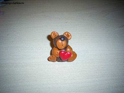 Поделки из мягкого пластика отлично подходят как для занятий с ребенком, так и для взрослого творчества. Сегодня мы будем использовать полимерную глину в изготовлении вот такого замечательного мишки с сердечком.
