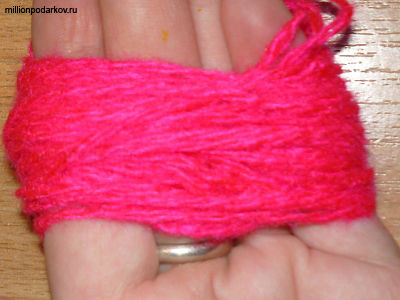 Наматываем на руку нитки для вязания.