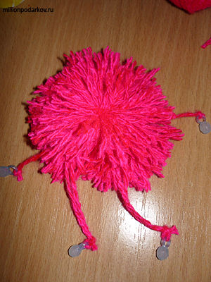 Разрезаем нитки, делаем ножки и ручки
