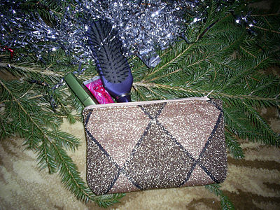 Вшиваем сверху молнию и у нас получается вот такая замечательная косметичка. Подобные поделки из остатков тканей можно подарить друзьям на Новый год или любой другой праздник.