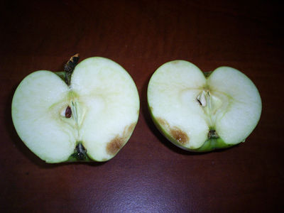 Разрежем яблоко на две половинки