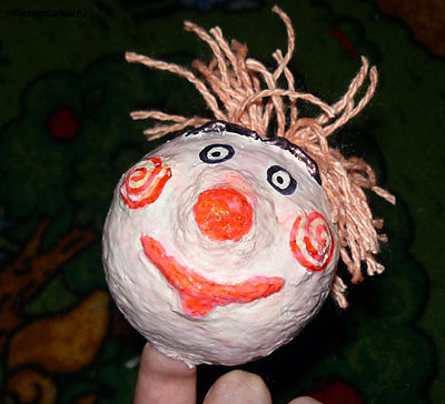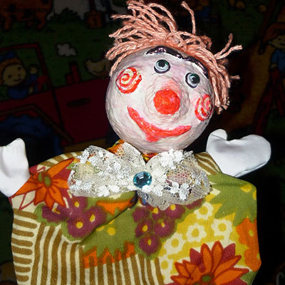Поделка из папье-маше и ткани "Кукла для кукольного театра - клоун Паша"