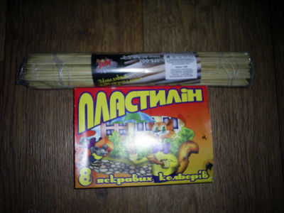 Для изготовления поделки подготовим пластилин и шампур из бамбука для отделки изделия.