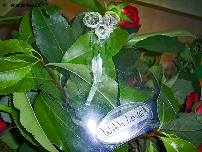 Приклеиваем все элементы к прозрачной основе, подписываем несмываемым маркером. Вот такая необычная открытка у нас получилась в итоге.