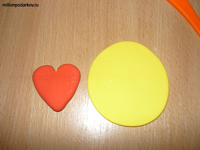 Затем лепим сердечко, для этого раскатываем скалкой шарик, затем с помощью пластикового ножа формируем сердечко.