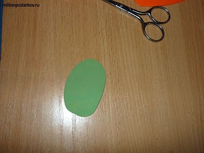 Из зеленой пластики делаем листики, с помощью ножниц наносим прожилки.