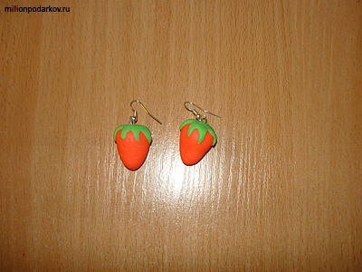 Прокалываем ягодку гвоздиком, затем закрепляем её на швензе. Даем изделию высохнуть в течении суток. Поделка из пластики своими руками "Серьги ягодки" готова!