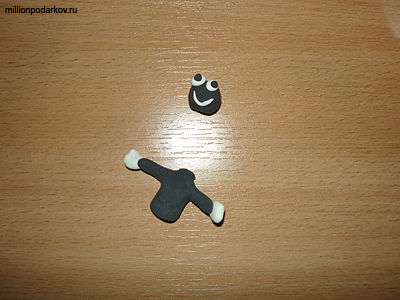 Лепим из коричневой пластики туловище и руки. Руки лепим белового цвета.