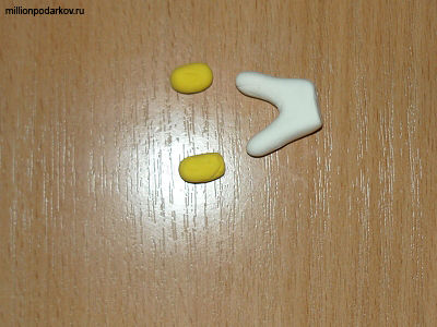 Лепим из белой пластики ноги и желтые ботинки.