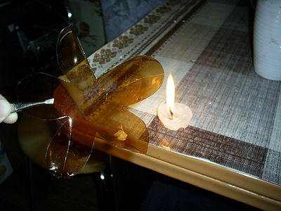Теперь плавим нашу деталь над свечой (на расстоянии 1-3 см), чтобы она приобрела красивые перегибы.