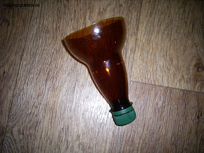Отрежем от бутылки верх. Это будет основа для вазы.