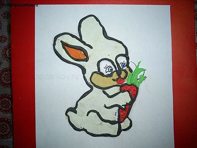 Поделки из пластилина на картоне смотрятся довольно оригинально. Сегодня мы, используя технику рисования пластилином, сделаем забавную открытку с зайчиком.