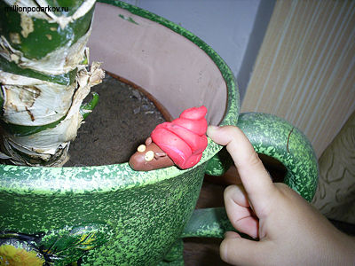 Такая поделка из пластилина руками детей, как улитка станет впоследствии для малышей замечательной игрушкой. Ее можно прикрепить к горшку с цветком или поставить на полочку. Конечно, если ребенку еще нет даже трех лет, помогать ему будет мама, но основные этапы изготовления изделия, такие как катания колбасок и шариков можно вполне доверить и малышу.