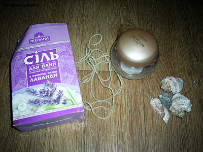 Для того чтобы делать подели из ракушек, нам понадобятся такие материалы, как баночка из-под крема, ракушки, соль для ванн, шерстяные нитки.