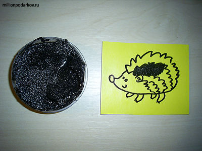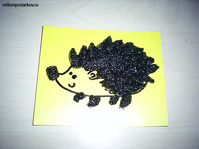 Вырезаем из картона фрагмент нужного размера и черным маркером рисуем на нем ежика.