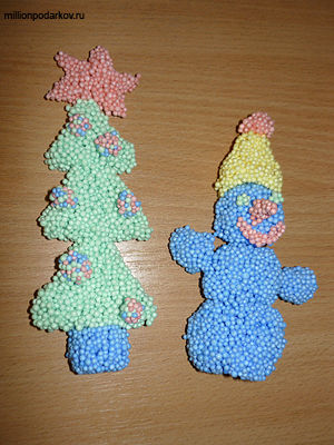Поделка из шарикового пластилина "Снеговик с ёлочкой"
