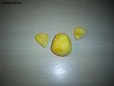 Из желтого шарикового пластилина лепим крылья и туловище.