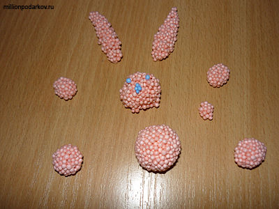 Поделка из шарикового пластилина вместе с ребенком 3-х лет "Розовый кролик"