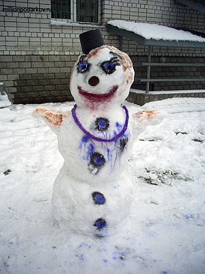 Аккуратно отшлифуем снеговика, для чего нам понадобятся толстые рукавицы. Из снега сделаем руки. Теперь берем краски и начинаем раскрашивать нашу поделку. В конце наденем ей бусы и горшок – шапку. Вот и готово наше зимнее чудо. Осталось с ним сфотографироваться.