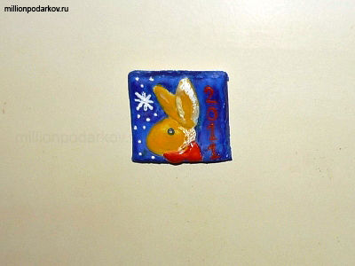 Поделка из соленого теста к Новому году "Магнит на холодильник - зайчик Playboy"