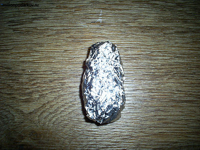 Для начала делаем основу поделки из фольги, для чего скомкаем ее в овальную форму.