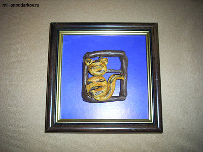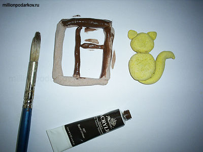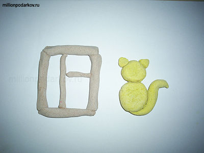 Из коричневого теста делаем раму, из желтого – котика.