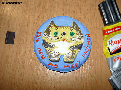 Наш магнитик "Толстый кот" готов, осталось только повесить его на холодильник.