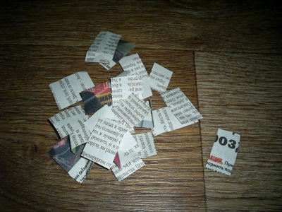 Разрезаем газету на прямоугольники и квадратики. Они могут быть разной ширины и длины. Главное, чтобы их края были ровными, тогда работа будет смотреться более аккуратной.