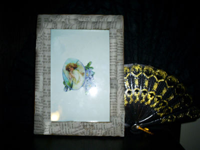 Теперь берем рамочку для фотографии, вынимаем стекло и наклеиваем на нее наши газетные квадратики. Делать это можно, покрывая рамочку клеем ПВА или же намазывая им каждый отдельный квадратик. Сверху все покрываем клеем ПВА или лаком. Так ваша поделка сохранится дольше и не будет подвержена неблагоприятным внешним воздействиям. В конце вставляем в рамочку красивое фото или просто картинку и закрываем стеклом и дощечкой.