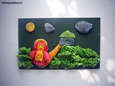 Поделки из теста, панно, сделанное своими руками, вызовет у ребенка массу восхищения. Такое изделие можно поместить в рамочку, а затем повесить на стенку. Кроме того, оно может стать отличной открыткой, подаренной ребенком взрослому.