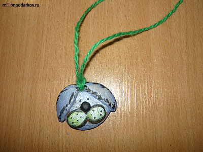 Вставляем нитку в медальон. Поделка из теста с детьми "Медальон заяц" теперь можно надеть на шею.