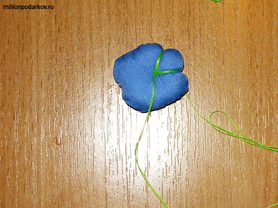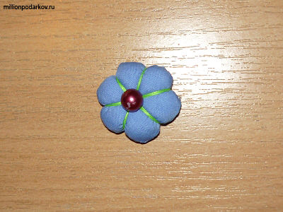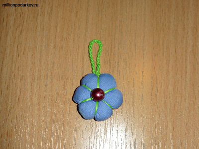 Пришиваем шнурочек к цветку. Поделка готова!