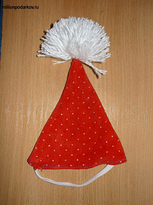 Пришиваем к колпаку помпон и резинку. Праздничный колпачок готов!
