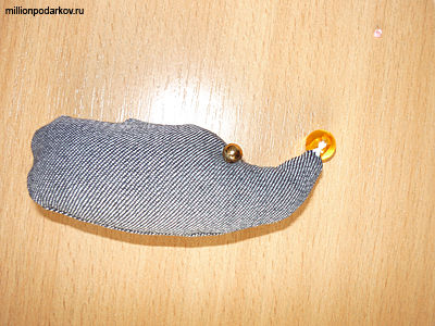 Сшиваем детали, затем выворачиваем и набиваем синтепоном. После этого пришиваем бусины - глазки, и бусину - носик.