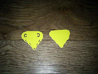 Затем декорируем нашу закладку. Для этого вырезаем глаза и разрисовываем их черным маркером. Рисуем клюв, разрисовываем и вырезаем.
