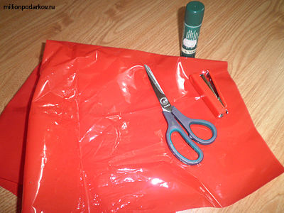 Для того, чтобы сделать поделку из упаковочной бумаги, нужно приготовить ножницы, клей и степлер. Размер листа лучше взять около 50 см, а плотность среднюю.