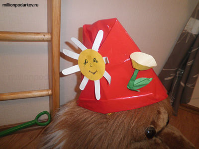 Поделка из упаковочной бумаги "Веселая шапочка"