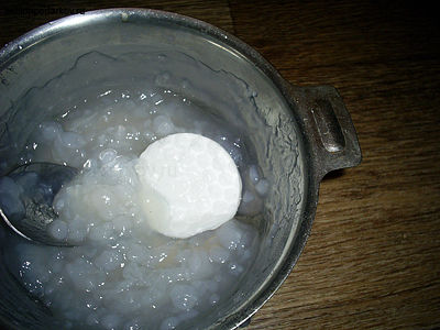 Для начала варим клейстер. Для этого столовую ложку крахмала разводим в небольшом количестве холодной воды, и затем вливаем тонкой струйкой стакан кипятка при постоянном помешивании. Теперь берем ватные диски и хорошо смачиваем их в клейстере.