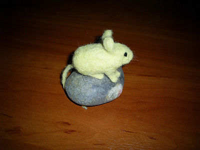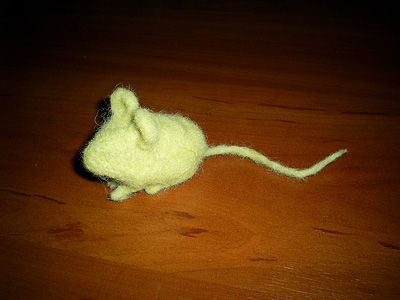 Теперь соединяем все детали вместе, «сваливая» их с основой. Для этого распушиваем «хвостик» и присоединяем его к телу мышки. Где нужно добавляем еще шерсти. Вот такая мышка у нас получается.