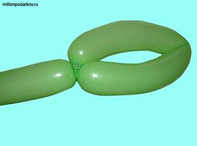 Затем делаем петлю на другом конце шарика ШДМ, для этого просто перекручиваем его, примерно в 25 см от края и перебрасываем петлю, закрепив пипкой шарика. На втором шаре ШДМ делаем такую же петлю. Петли на ШДМ будут листочками нашего цветка.