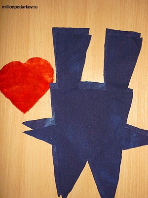 Вырезаем 2 детали для будущего зайца, так же вырежем детали для сердечка, которое будет у зайца в руках.